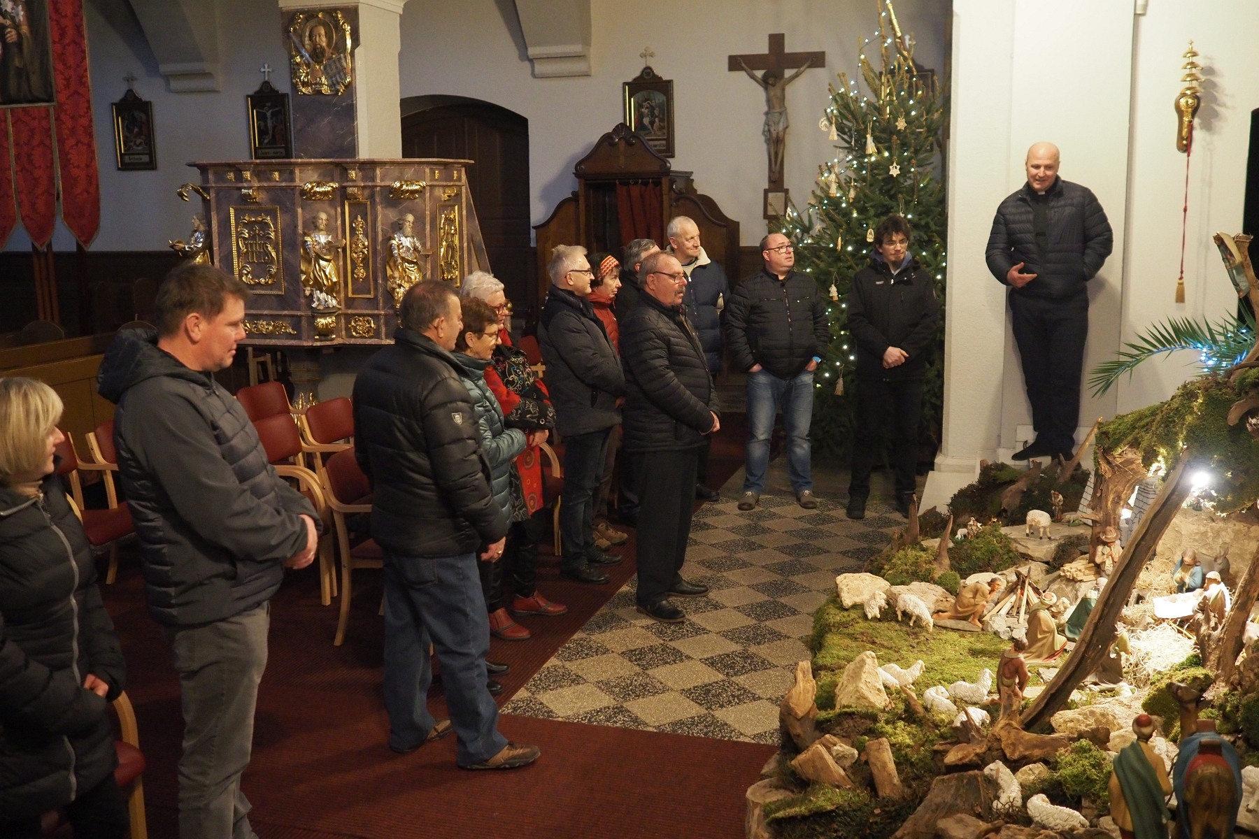 Klošter, dvorišče-parkirišče za samostanom. Po dobrem kosilu in kratkem počitku, se nas je zbralo, skupina 17 jasličarjev in se odpravili na "zahvalni" jasličarski izlet. Letos smo krenili v smer severovzhod, v prekmurje. Obiskali in ogledali smo si jaslice v romarskem svetišču Marije v Logu v Turnišču, kjer so nas sprejeli domači patri in nam predstavili zgodovino cerkve in zasnovo jaslic. V Turnišču smo se ustavili še v kapeli Marije Matere Cerkve pri sestrah klarisah, kjer smo se priporočili v molitev. Pot smo nadaljevali proti Črenšovcem, kjer smo poleg cerkve obiskali tudi grob duhovnika Ivana Krajnca, pokojnega Črenšovskega župnika in našega znanca. Sledili so Beltinci, kjer smo se po ogledu jaslic v cerkvi ustavili še ob bratsko-sestrski mizi in si med seboj podelili sklepni del nedeljskega popoldneva, ter tako skupaj sklenili dan.