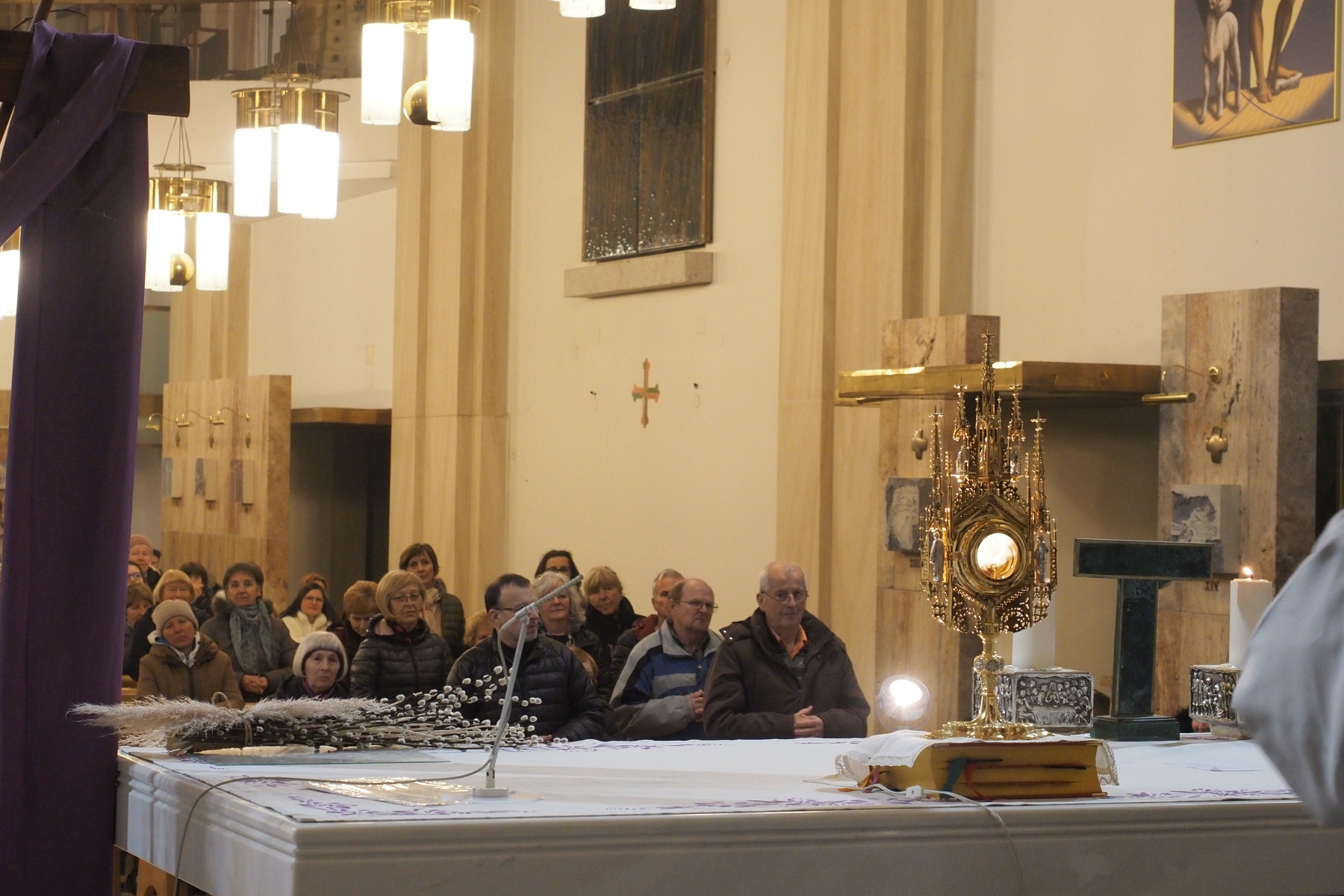 V ponedeljek in torek, 13. in 14. marca, je bil za našo župnijo praznik - dan celodnevnega češčenja. V ponedeljek pri podružnici svetega Roka na bregu, v torek pa v župnijski in samostanski cerkvi sv. Petra in Pavla. Pred Jezusa v izpostavljenem Najsvetejšem zakramentu, smo preko dneva prihajali, se pred Njim ustavljali v molitvi, s svojimi prošnjami in zahvalami, kot posamezniki in manjše skupine. Ob 17.00 uri smo imeli skupno molitveno uro, ki so jo oblikovali člani ŽPS. S sveto mašo ob 18.00 smo sklenili dan celodnevnega češčenja in vstopili v večerni program seminarja nove evangelizacije, ki se je po maši nadaljeval v cerkvi. Sveto mašo je vodil in nas med njo nagovoril p. Peter Vrabec. Pri maši je prepeval župnijski pevski zbor, po maši pa so nam zapeli člani pevske skupine Veselje.