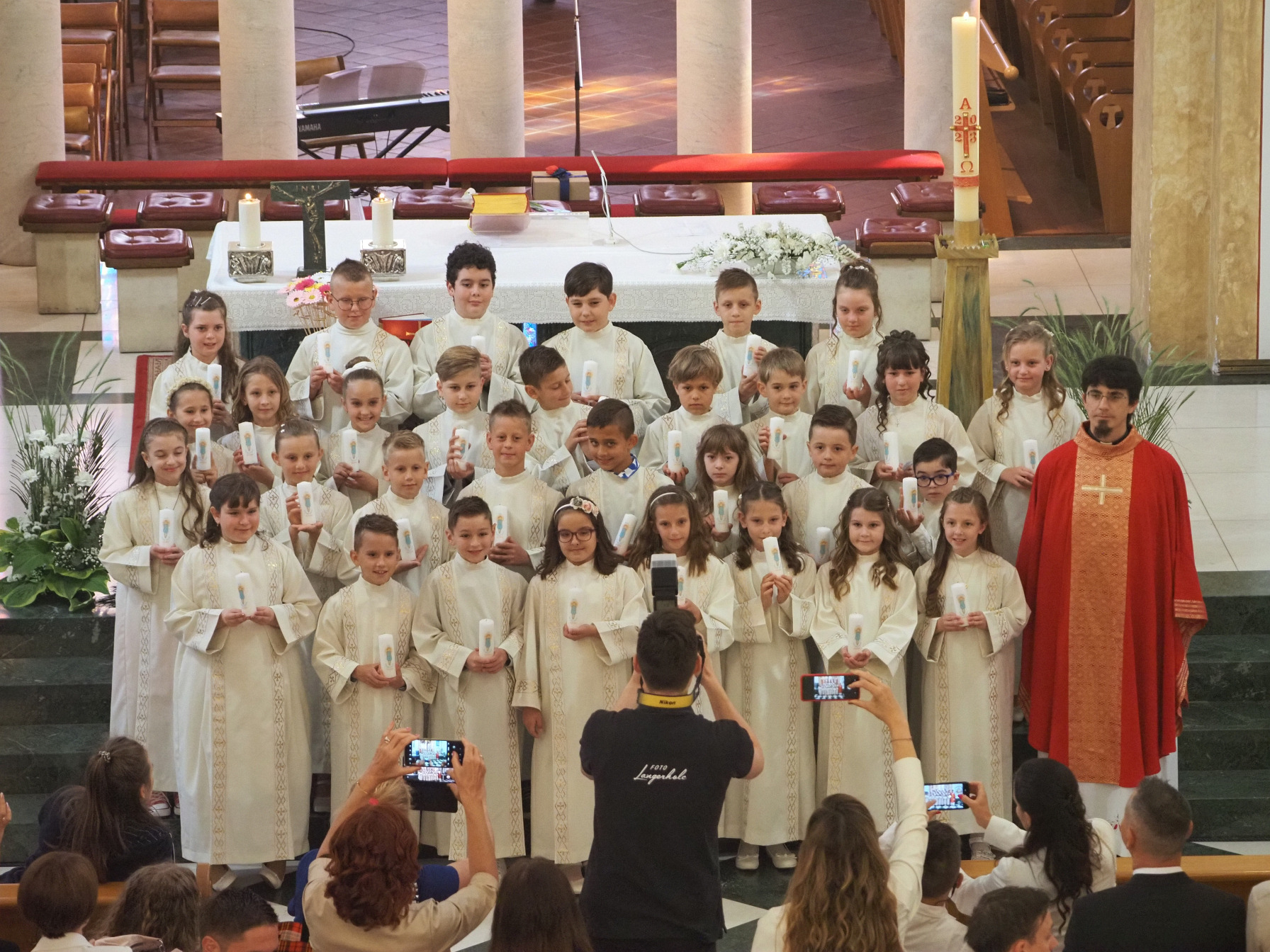 Pri maši sta bila ob oltarju p.Andrej in p.Nikolaj iz Stične, prepevali so prvoobhajanci ob podpori veroučnega zborčka pod mentorstvom Karmen in Miha.
