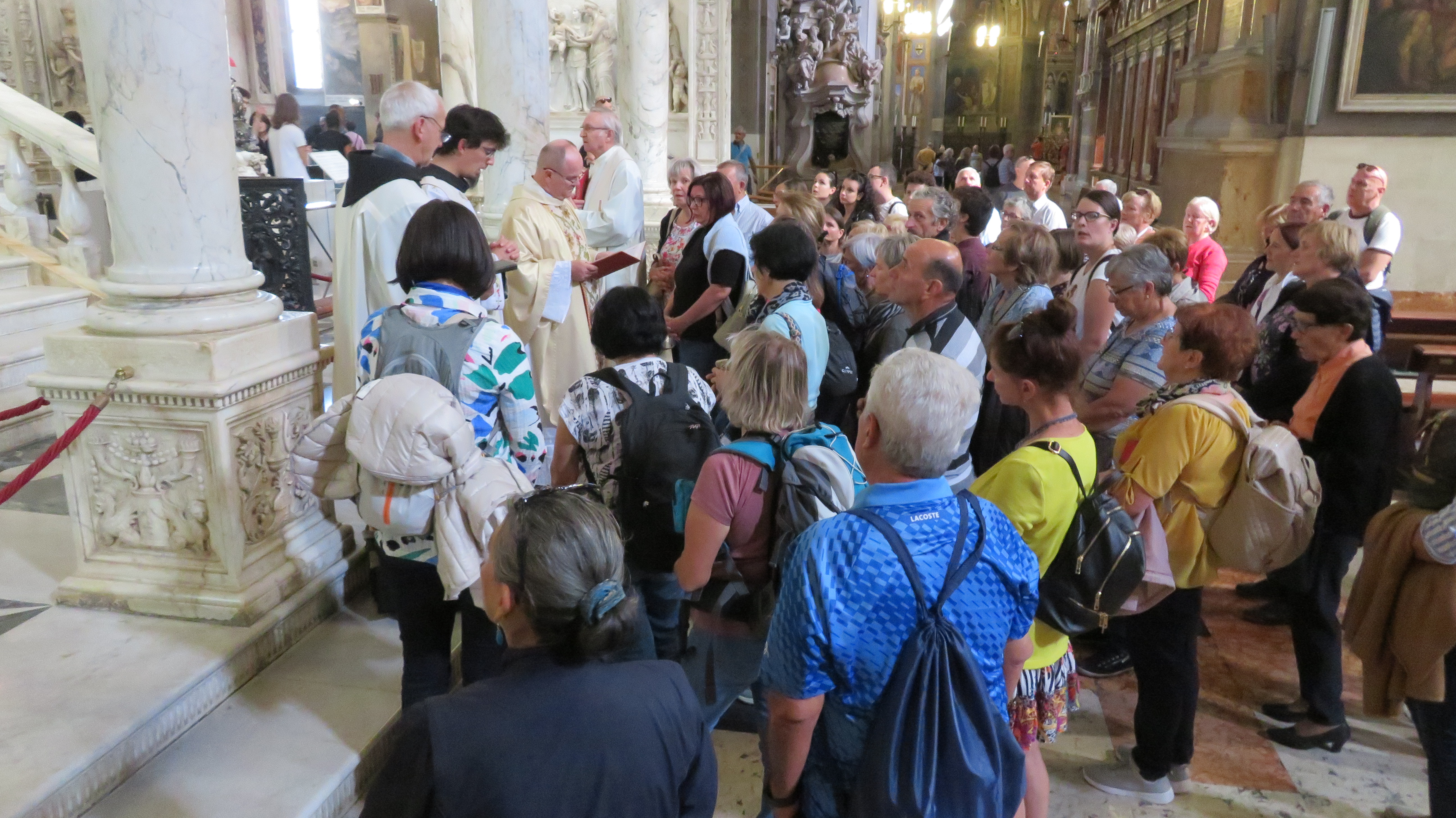 V baziliki sv. Antona smo darovali zahvalno sv. mašo. Somaševanje je vodil p. Milan Kos. Po maši smo se v procesiji preselili do groba sv. Antona in tam opravili pobožnost njemu na čast. Sledil je ogled bazilike in relikvij sv. Antona ter križnega hodnika. Pred odhodom smo se zaustavili še pri sv. Leopoldu Mandiću. Ob njegovih relikvijah prosili za zdravje in da bi bili obvarovanji bolezni raka.